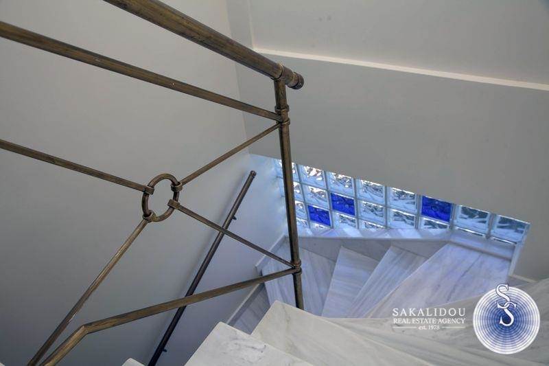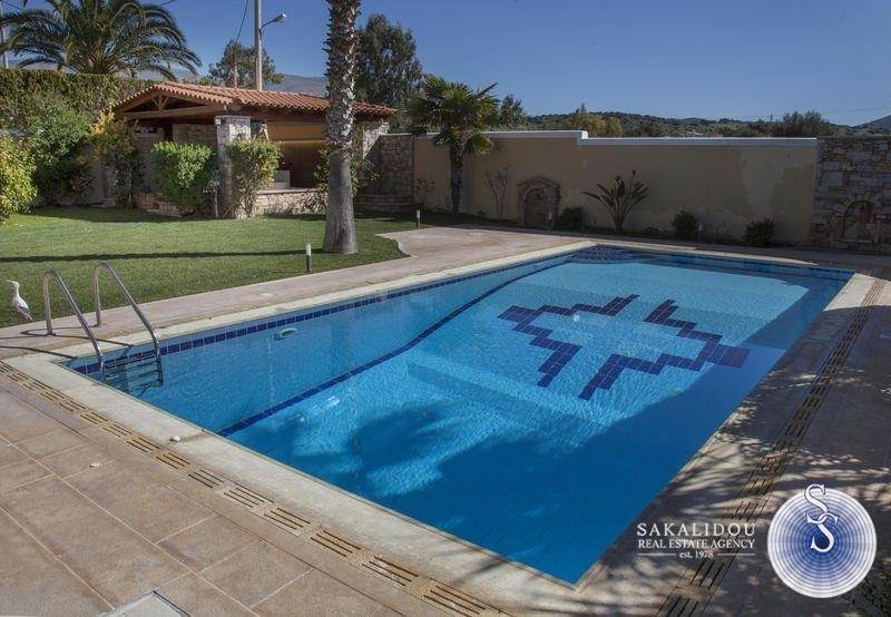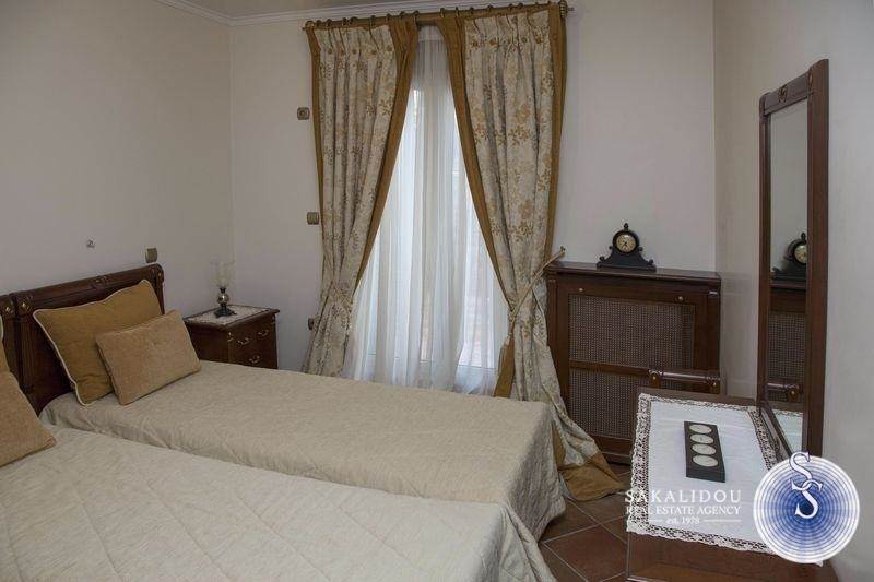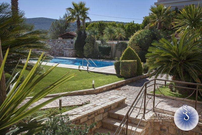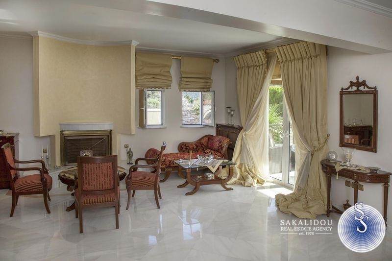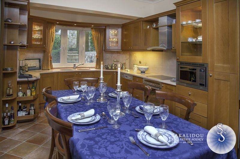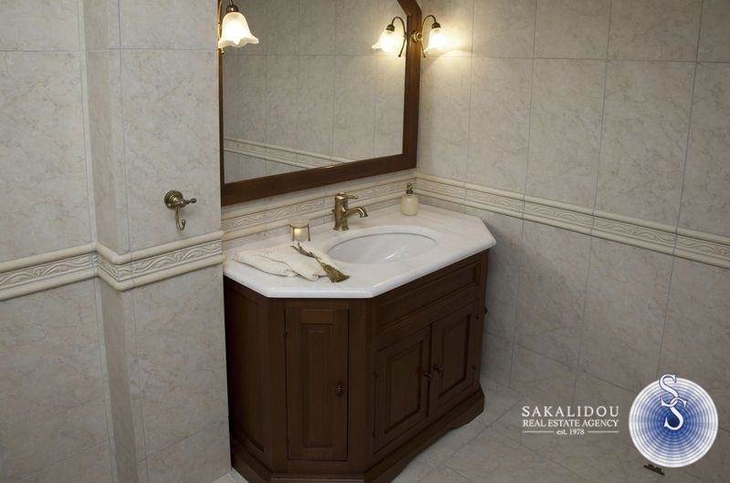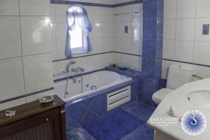 A luxury villa of three levels 400 sq.m. It consists of 2 living rooms 4 bedrooms (three are master), 4 bathrooms, 2 kitchens fully equipped, internal storage, 2 fireplaces. There is a luxurious pool, a stone built barbeque, a kiosk, and an elegant garden with many beautiful trees. It is furnished with high quality furniture and unique pieces.
